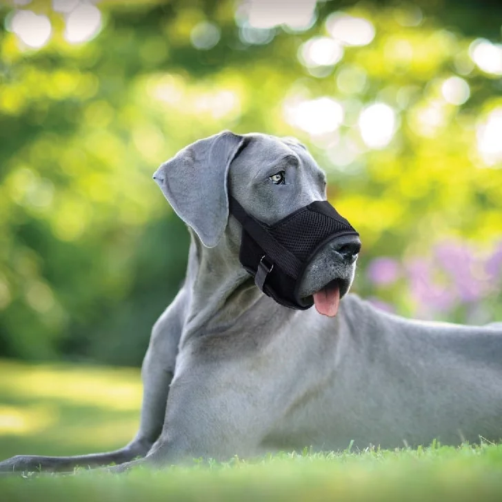 A dog wearing muzzle. Image Source: Coastal Pet Products